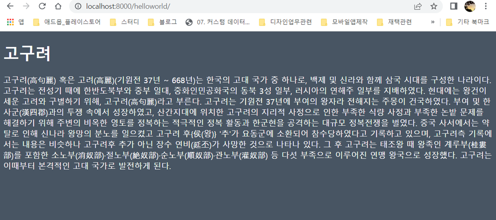 2. html 내용 수정 / 경로: django_tutorial/helloworld/templates/helloworld/index.html