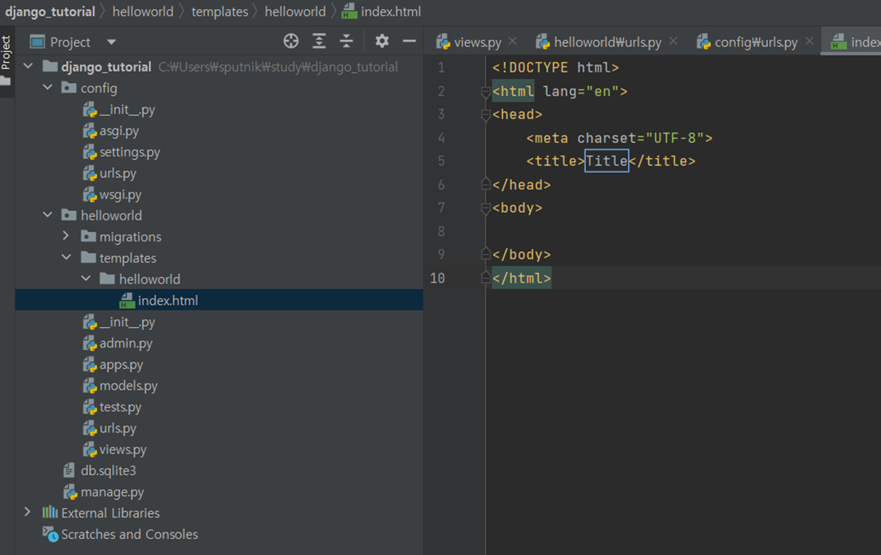 10. html 페이지 세팅 / 경로: django_tutorial/helloworld/